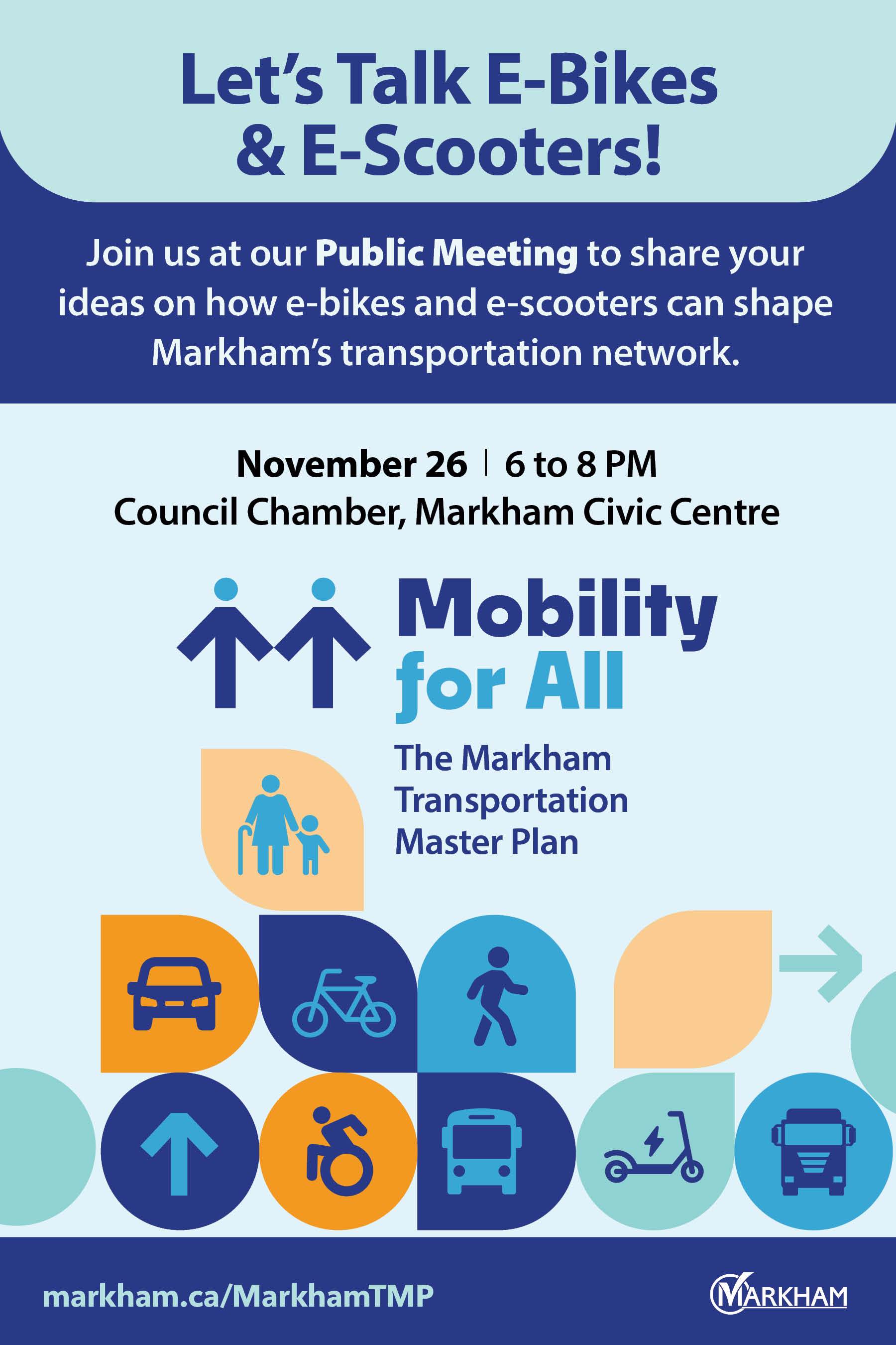 Join us for the first public meeting to learn more about the project and share your thoughts on the future of micromobility and how Markham's transportation network could evolve.