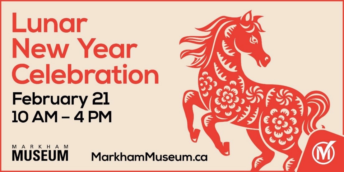 Visit the Markham Museum's transportation hall on February 21st from 10 AM to 4 PM to celebrate the Year of the Horse with an unforgettable family friendly celebration! Explore the traditions of Lunar New Year with hands-on activities such as Zhezhi (Paper Folding), Chinese Paper Cutting, Calligraphy and Mahjong. Tickets are Free |