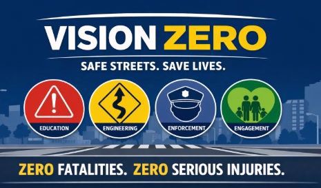 Vision Zero is a road safety program with one goal: zero deaths and zero serious injuries on our roads. It focuses on making streets safer through better road design, education, traffic enforcement, and community involvement. It is based on the idea that traffic collisions are preventable and focuses on making streets safer for everyone.